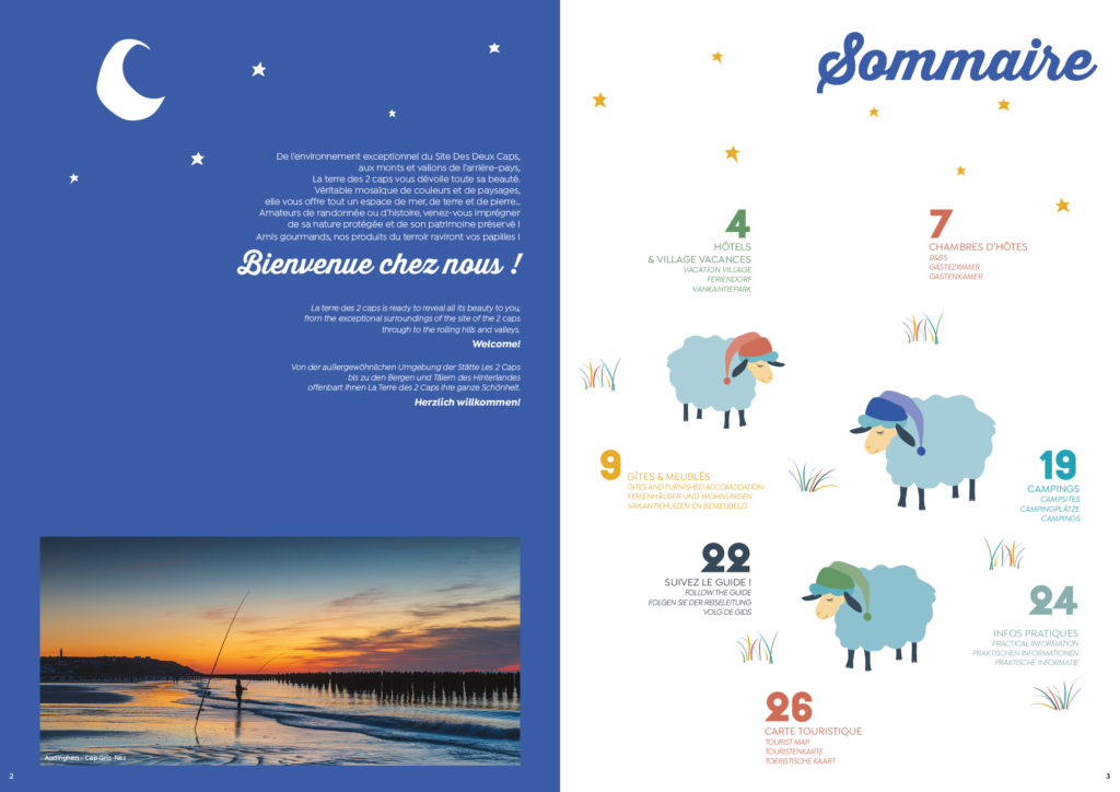 Conception graphique des 2 guides, tourisme et hébergements, qui mettent en valeur les acteurs de cette belle région ! Légéreté et poésie habillent ces 2 brochures de 32 et 28 pages grâce à une mise en page simple, aérée, qui fait la part belle aux visuels. Des illustrations colorées posées par-ci, par-là renforcent le côté léger et nature et apportent de la gaieté.