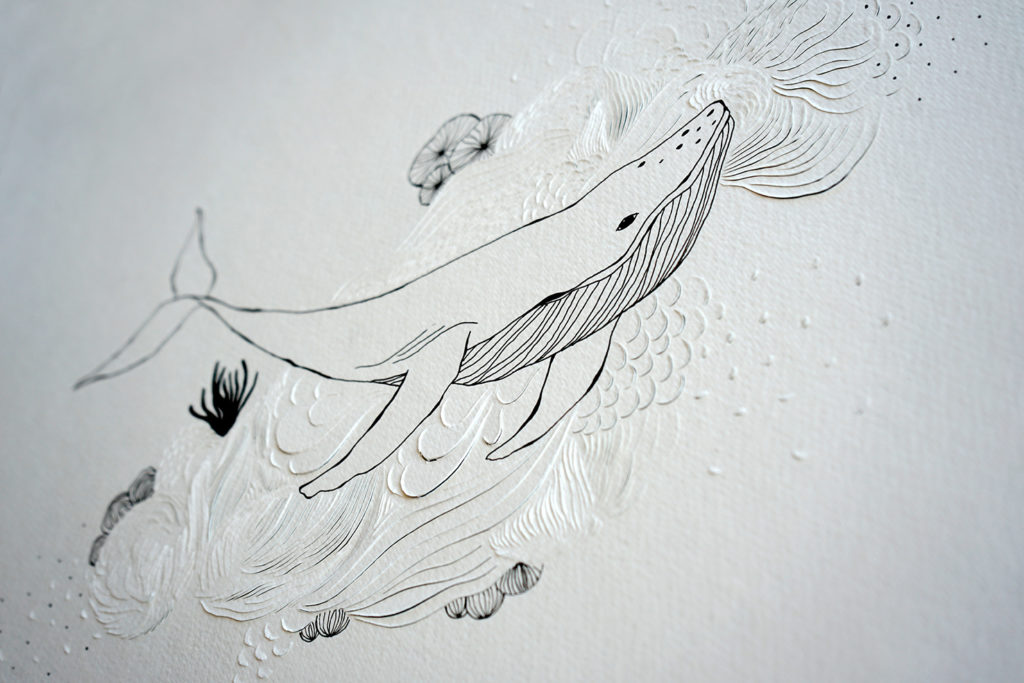 Dessin réalisé à l’encre noire sur papier sculpté